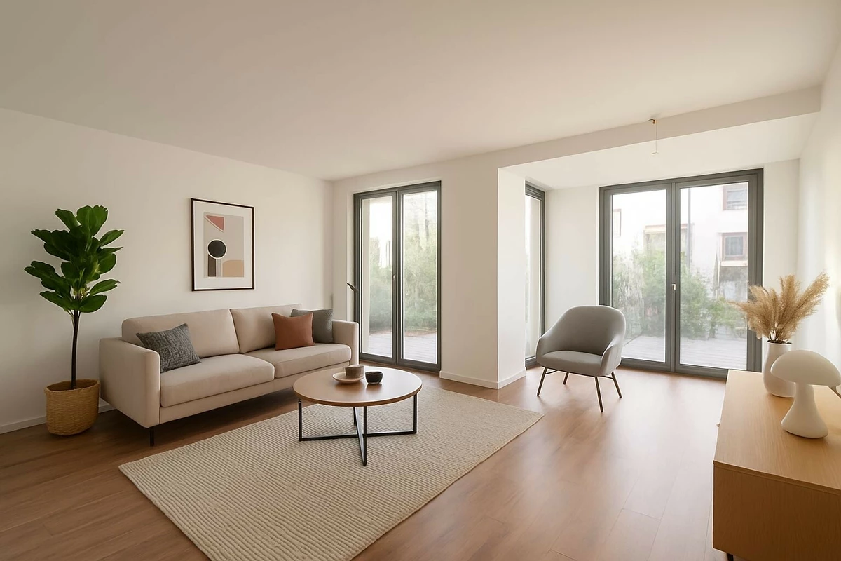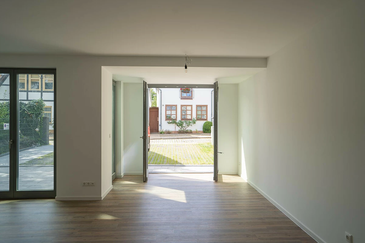 Diese attraktive Eigentumswohnung befindet sich im Erdgeschoss eines modernen Zweifamilienhauses, das im Jahr 2024 erbaut wurde und liegt im Herzen von Warnemünde. Die lichtdurchflutete Wohnung überzeugt durch ihr stilvolles und individuelles Raumkonzept und die maßgeschneiderten Fenster kommen besonders gut zur Geltung . Der großzügige Wohnbereich ist für eine offen gestaltete Küche ausgelegt, ohne Einbauküche. Vom Wohnzimmer aus gelangen Sie direkt auf die südwestlich ausgerichtete Terrasse, die einen Blick auf die berühmten Kapitänshäuser von Warnemünde bietet – perfekt, um die Sonne zu genießen oder den Tag entspannt ausklingen zu lassen. Zusätzlich zur offenen Wohnküche verfügt die Wohnung über ein Tageslicht-Duschbad mit Handtuchtrocknerheizung sowie zwei Schlafzimmer, die optimal geschnitten sind. Die Wohnung verfügt über einen separaten HWR mit Waschmaschinenanschluss. Alle Zimmer sind über einen großzügigen Flur zugänglich, der ein einladendes Ambiente schafft. Ein ca. 10 m² großer Kellerraum bietet zusätzlichen Stauraum und der Pkw-Außenstellplatz direkt am Haus sorgt für bequeme Parkmöglichkeiten. Der Keller ist bequem mit einem Fahrstuhl erreichbar, was den Zugang erleichtert. Weiterhin steht ein gemeinschaftlicher Fahrradkeller zur Verfügung. Die gesamte Wohnung ist mit einer Fußbodenheizung ausgestattet, die für wohlige Wärme sorgt. Diese Wohnung vereint modernen Wohnkomfort in einer hervorragenden Lage und ist ideal für alle, die das Leben in Warnemünde genießen möchten. Das Wohn-Ensemble kann auch komplett erworben werden.