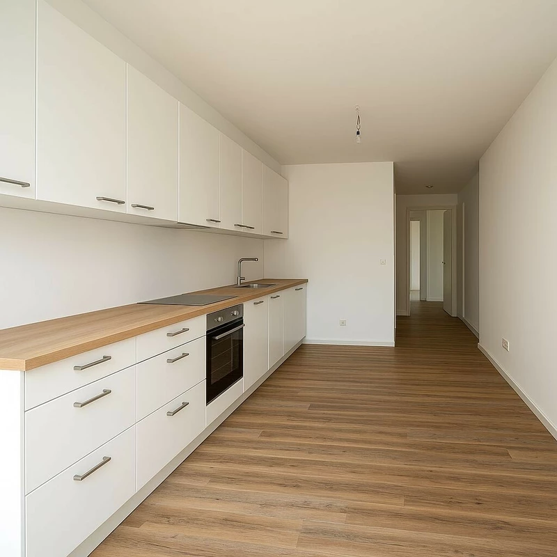 Terrasse in Süd-West HWR mit Waschmaschinenanschluss Keller, Gemeinschaftlicher Fahrradkeller Pkw-Stellplatz direkt am Haus Fahrstuhl Barrierefrei Fenster 3-fach Verglasung, teilweise elektr. Außenrollläden Küche ohne Einbauküche
