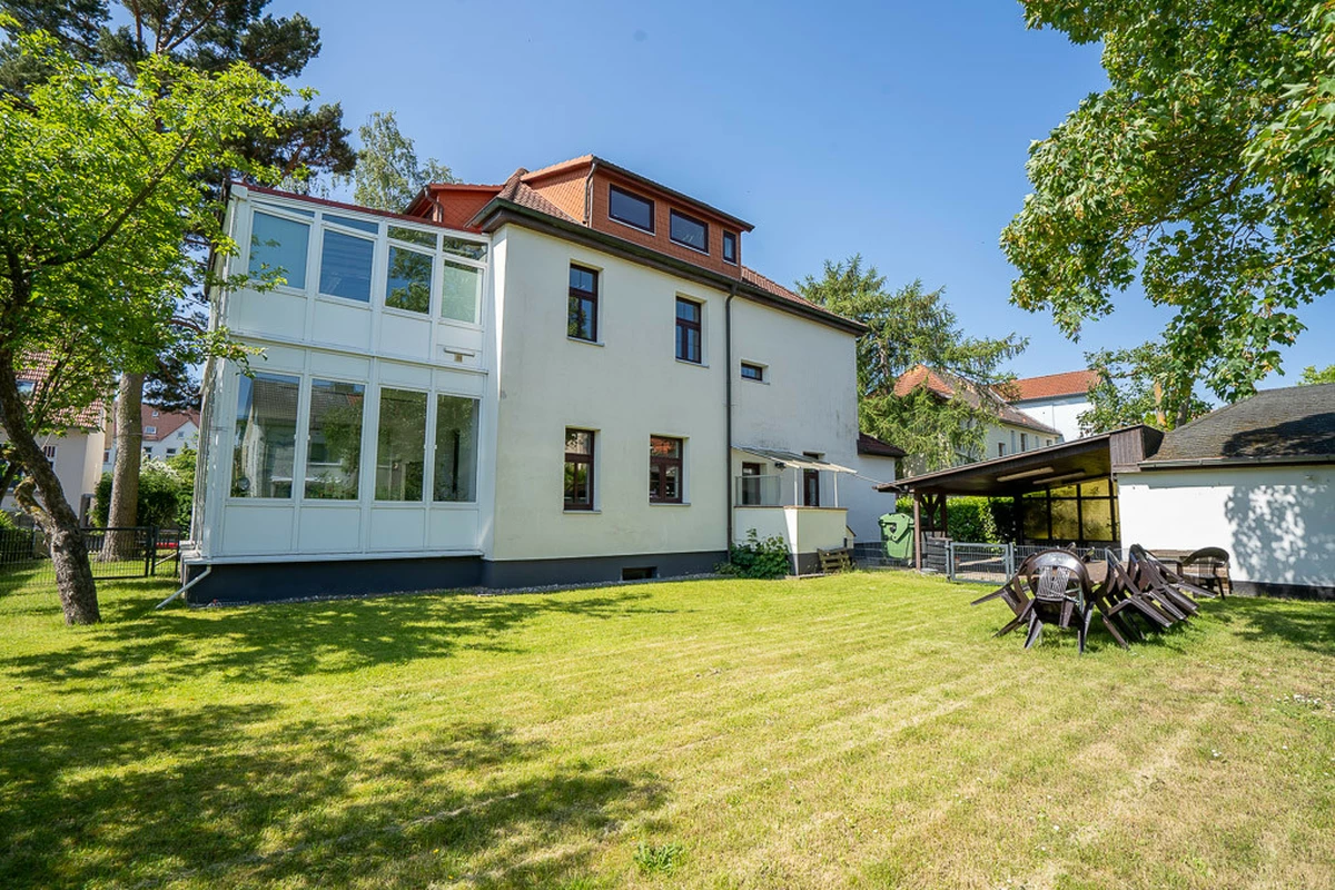 In bester Lage des beliebten Rostocker Bahnhofsviertels präsentiert sich diese großzügige Villa als echtes Unikat mit vielfältigen Nutzungsmöglichkeiten – sei es als repräsentativer Unternehmenssitz, charmantes Wohnhaus oder kombinierte Wohn- und Arbeitsimmobilie. Das wahrscheinlich im Jahr 1925 erbaute Gebäude wurde 1993 umfassend saniert: Fenster, Dach, Heizung, Elektrik und Wasserleitungen wurden modernisiert und das Objekt zum hochwertigen Geschäftshaus umgebaut. Ein besonderes Highlight stellt der zweigeschossige, beheizte Wintergarten dar, der 1999 ergänzt wurde und sowohl als lichtdurchfluteter Wohnbereich als auch als stilvoller Besprechungsraum beeindruckt. 2004 erfolgte ein weiterer hochwertiger Badumbau im Erdgeschoss. Mit rund 357 m² Wohn- und Nutzfläche, insgesamt 15 Zimmern, vier WC-Einheiten sowie zusätzlichen Abstellflächen im Keller bietet das Haus viel Raum für unterschiedlichste Konzepte – ob Praxis, Kanzlei, Agentur, großzügiges Familienwohnen oder die Kombination aus Wohnen und Arbeiten unter einem Dach. Das Dachgeschoss ist mit einer Klimaanlage ausgestattet und sorgt auch an heißen Tagen für angenehmes Arbeiten oder Wohnen. Für Fahrzeuge steht eine massive Doppelgarage mit angrenzendem Doppelcarport zur Verfügung – komfortabel für Familie, Mitarbeitende oder Kunden. Die Immobilie befindet sich auf einem ca. 810 m² großen, gepflegten Grundstück in einer der attraktivsten Lagen Rostocks. Sie verbindet historischen Charme mit moderner Technik und bietet ein inspirierendes Umfeld für alle, die Großzügigkeit, Stil und Flexibilität schätzen.