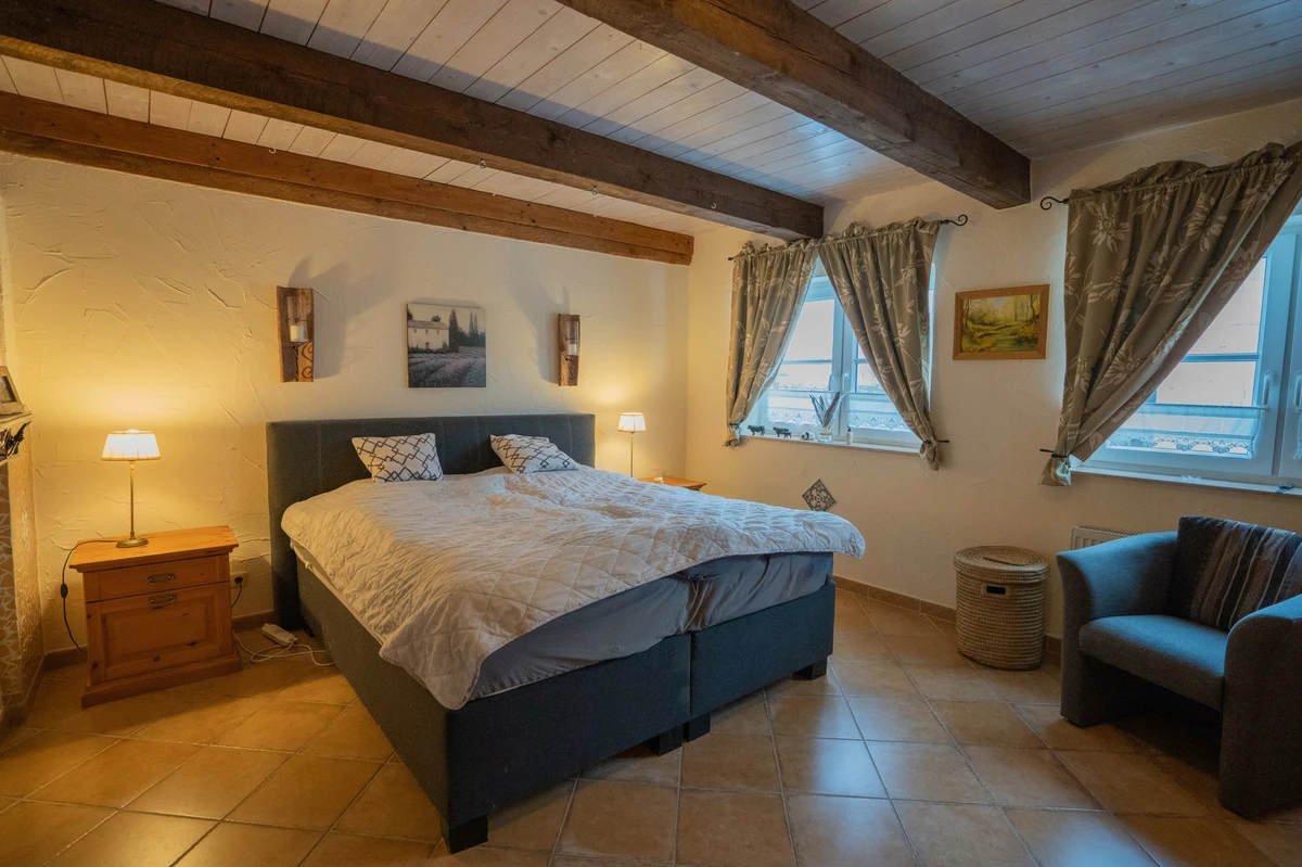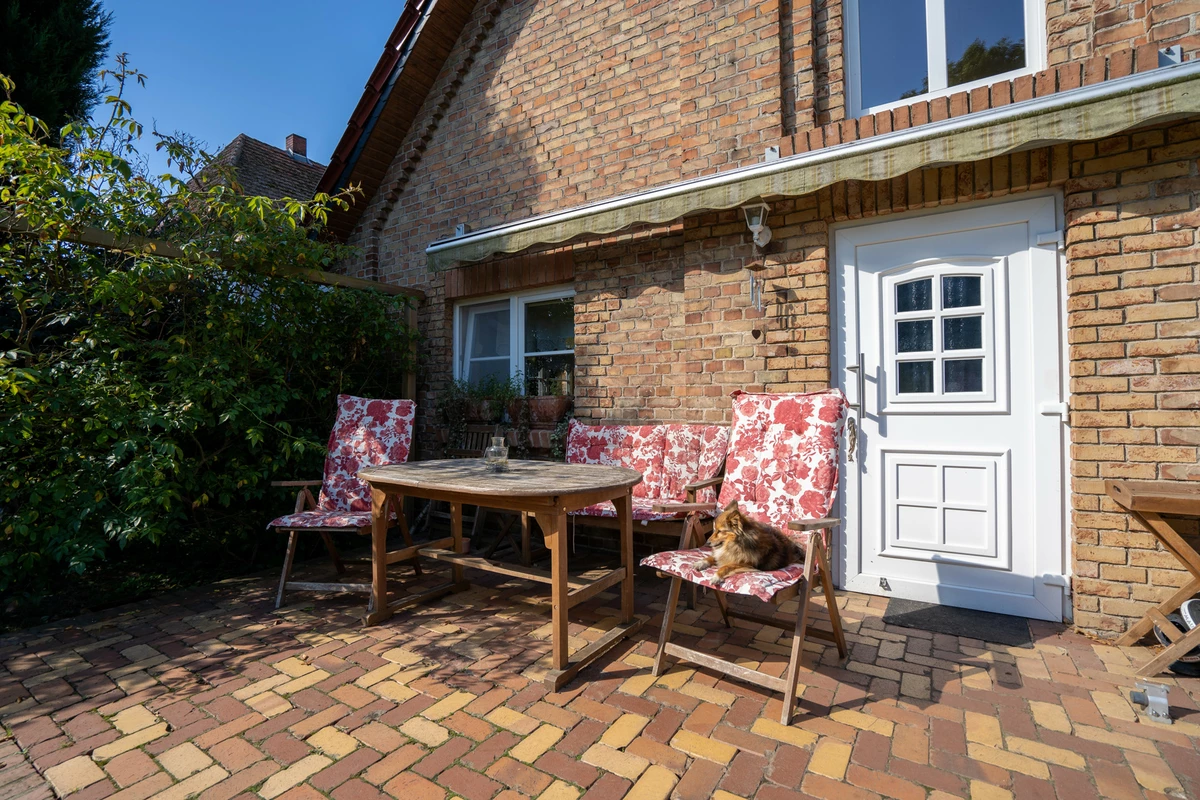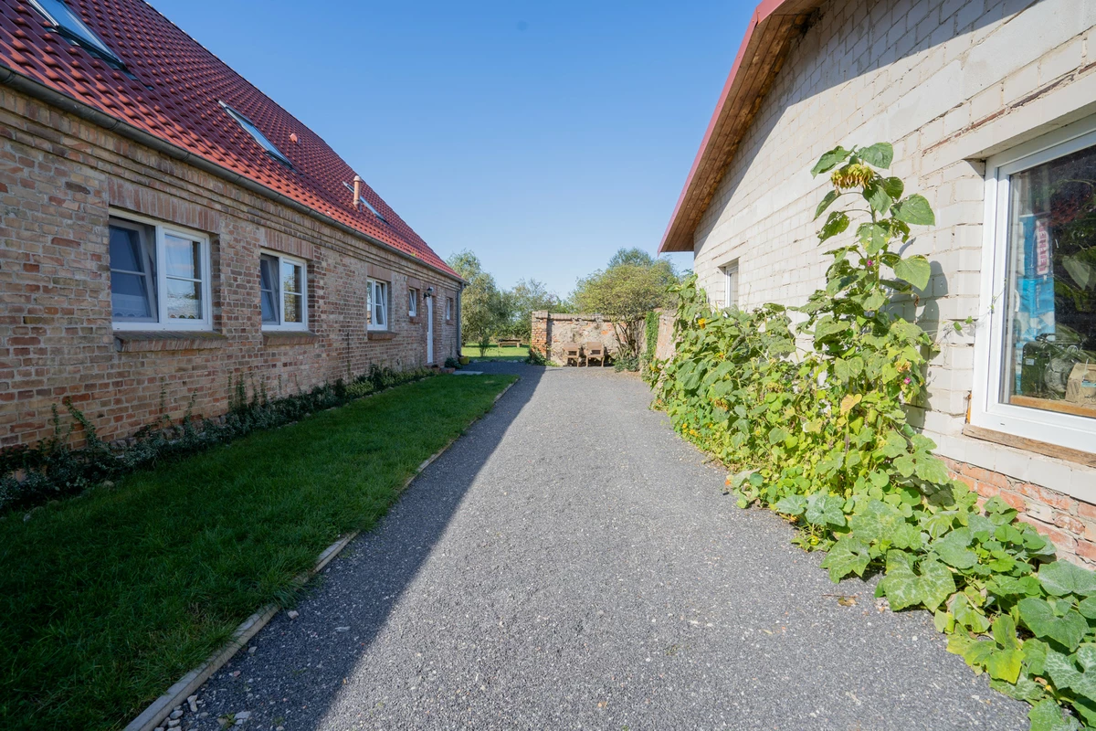 Die aktuelle Ferienwohnung (WE2) verfügt über ausreichend Stellplätze für Feriengäste und einen separaten Eingang an der westlichen Seite des Hauses, sodass die eigene Privatsphäre gewährleistet ist. Mit ca. 90 m² Wohnfläche, einem Tageslichtduschbad, drei Zimmern und einem Hauswirtschaftsraum bietet sie eine flexible Raumaufteilung. Optional besteht die Möglichkeit ein Schlafzimmer dieser Wohnung der WE1 zuzuordnen. Die WE2 besticht ebenfalls durch ihre offene Raumgestaltung, eine hochwertige Einbauküche, die Fußbodenheizung, den ehemaligen Tiertrog und den Zugang zum großzügigen ca. 600m² großen, privaten Garten ….