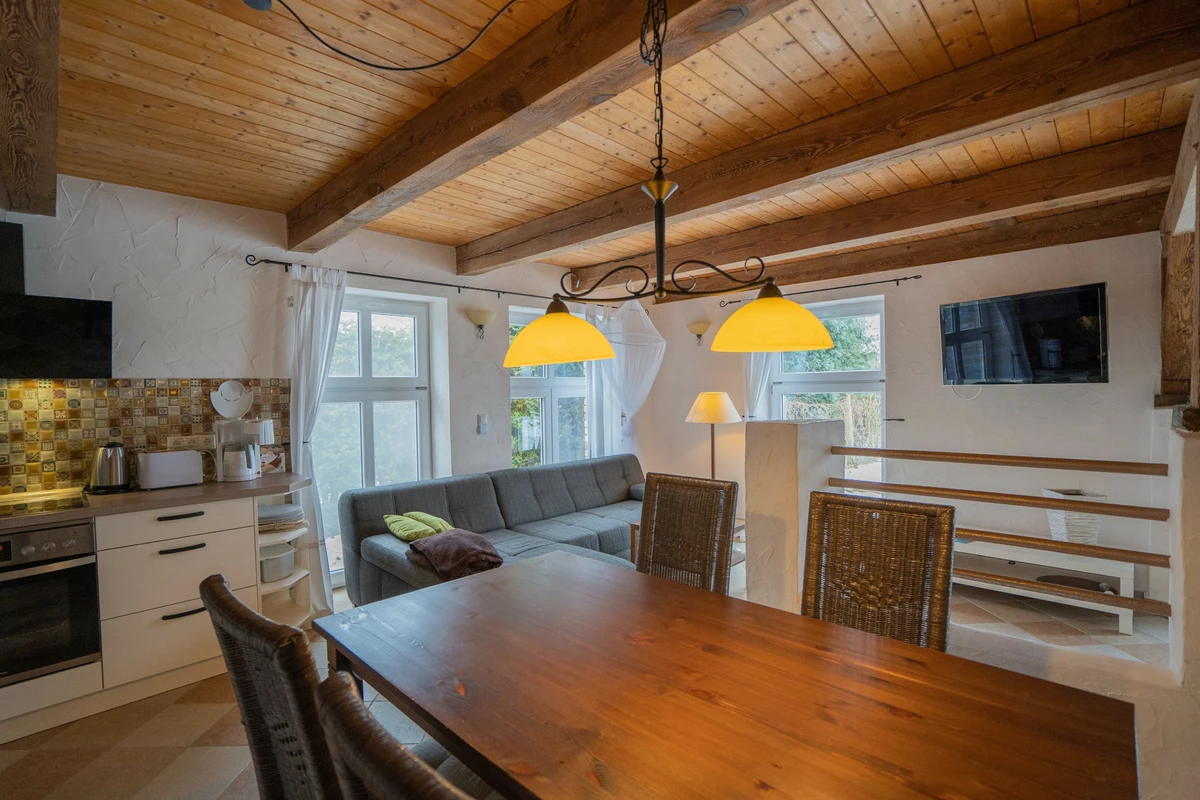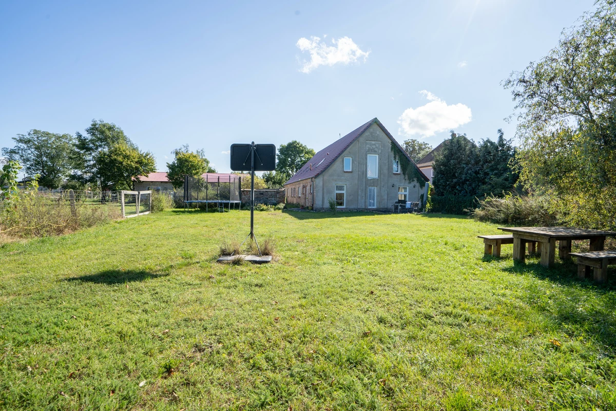 In der Nähe des beliebten Luftkurortes Plau am See präsentiert sich dieses charmant sanierte Bauernhaus auf einem großzügigen Grundstück von ca. 4.813 m². Das im Jahr 1900 erbaute Anwesen diente ursprünglich als Wohnhaus und Viehstall. In den Jahren 2012-2013 sowie 2021-2022 wurde das ca. 300 m² große Haus umfassend saniert und modernisiert. Das teilunterkellerte Gebäude ist heute in drei separate Wohnungen unterteilt, die entweder vom Eigentümer selbst genutzt oder an Feriengäste vermietet werden. Die Hauptwohnung (WE1), vom Eigentümer bewohnt, erstreckt sich über ca. 147, m² und verteilt sich auf Erd- und Dachgeschoss. Sie bietet fünf Zimmer, ein Tageslichtvollbad ein Gäste-WC und einen großen HWR/HAR. Das Highlight dieser Wohnung ist das Wohnzimmer mit seinen sichtbaren Balken, einem urigen Specksteinkamin und einer offenen Landhausküche.