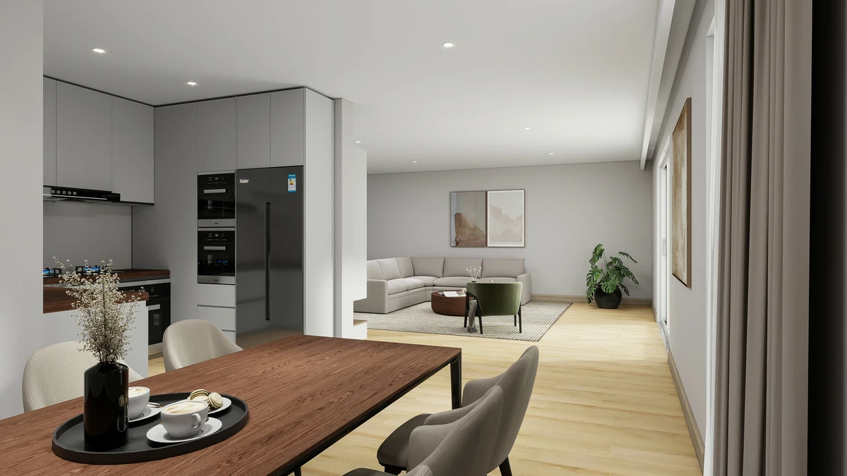 modernes Neubauprojekt, das zeitgemäße Architektur, nachhaltige Energieversorgung und eine hochwertige Ausstattung verbindet. Das Quartier Bi de Gärtners umfasst 12 komfortable Eigentumswohnungen mit Wohnflächen von ca. 67 bis 122 m² sowie 18 PKW-Stellplätzen, die im Kaufpreis bereits enthalten sind. Die Grundrisse bieten vielfältige Wohnkonzepte – vom kompakten 2-Zimmer-Apartment bis zur großzügigen 4-Zimmer-Familienwohnung. Dank Aufzug, Fußbodenheizung und großzügigen Balkonen oder Terrassen mit Gartenanteilen entsteht ein Wohnumfeld, das Komfort und Alltagstauglichkeit vereint. Große Fensterfronten sorgen für helle Räume und ein offenes Wohngefühl. Die moderne Energieversorgung mit Luftwärmepumpe und Photovoltaikanlage gewährleistet niedrige Nebenkosten, eine hervorragende Energiebilanz und einen Beitrag zum Klimaschutz. Das Gebäude wird in massiver Bauweise errichtet und fügt sich harmonisch in das Ortsbild von Sanitz ein. Die klare, zeitlose Architektur überzeugt durch helle Fassaden, moderne Linienführung und eine nachhaltige Bauweise.